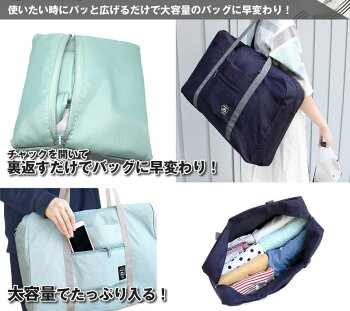 使わない時はコンパクトに、 使う時は広げるだけで大容量収納バッグに変身! キャリーケースの持ち手に差し込めるキャリーオンバッグにもなりますので、 移動も楽々です。