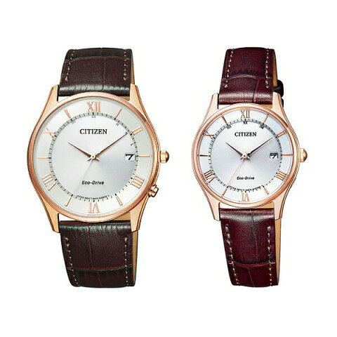 ■シチズンコレクション エコ・ドライブ電波時計 薄型 ペアウォッチ 【メンズ】 ■商品番号:AS1062-08A ■JANコード:4974375471993 ■キャリバーNo.:H415 ■光発電:フル充電時2年駆動 ■重量:42g ■厚み:8.4mm ■ケースサイズ:37.2mm ■バンド幅:20.0mm 【レディース】 ■商品番号:ES0002-06A ■JANコード:4974375476202 ■キャリバーNo.:H0F0 ■光発電:フル充電時2.5年駆動 ■重量:25g ■厚み:7.4mm ■ケースサイズ:28.0mm ■バンド幅:14.0mm ■時差設定機能 ■衝撃検知機能 ■充電残量表示機能 【共通】 ■メーカー希望小売価格:33,000円(本体価格) ■エコ・ドライブ 電波時計(国内専用) ■精度:±15秒/月(非受信時) ■ケース:ステンレス ■表面処理:ピンクゴールドめっき ■ガラス:サファイアガラス ■バンド:カーフ革 ■防水性:5気圧防水 ■受信局自動選択機能 ■定時受信機能 ■強制受信機能 ■充電警告機能 ■過充電防止機能 ■パーペチュアルカレンダー 2100年2月28日までのうるう年などの月末のカレンダー修正を一切不要にしたカレンダー機能です ■付属品:化粧箱 メーカー保証書 当店保証書 ■備考:国内正規品 メーカー保証付き ●ギフトラッピングのご案内はこちら ●刻印のご案内はこちら 記念品・贈答品・御祝いの品に【刻印】を承ります。