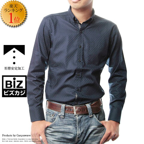 【送料無料】【ビズカジ】【シャツ】楽天ランキング1位 シャドー チェック ボタンダウン 形態安定加工 ビズカジ ネイビー シャツメンズ 長袖 キレイめ ビズカジ セールチェック 形態安定生地ギャルソンウェーブ【楽ギフ_包装】【あす楽対応】ボタンダウン 558845
