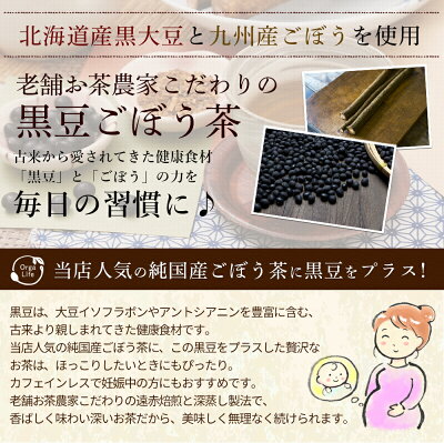 人気のごぼう茶に国産黒豆をプラス! 深蒸し製法で味わい深く老舗お茶やさんが作る身体にやさしい健康茶です。